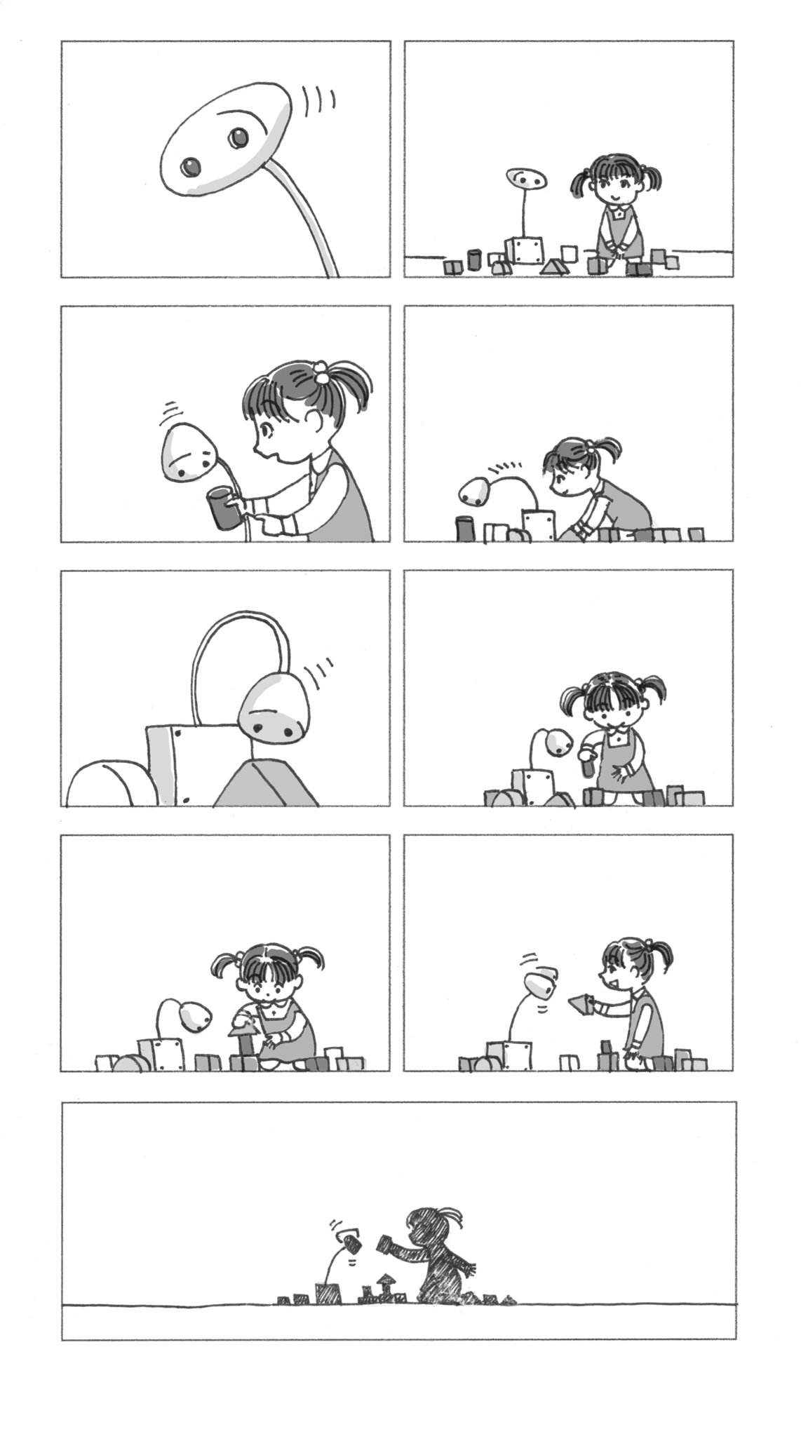 音声と顔認識で、あなたにしか反応しない優秀なロボットなのですが、安定性が悪く、転ぶとパーツがバラバラになり自己修復できません