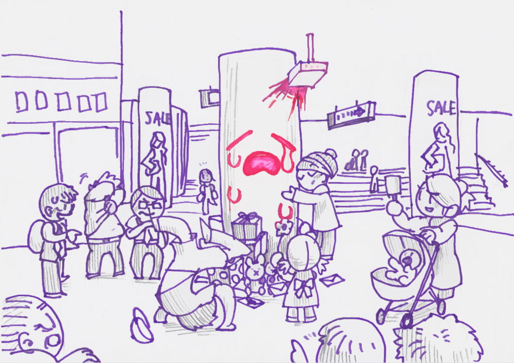 柱に投影機で顔を映すだけのギミックが、人々の心をどう動かすのでしょう。