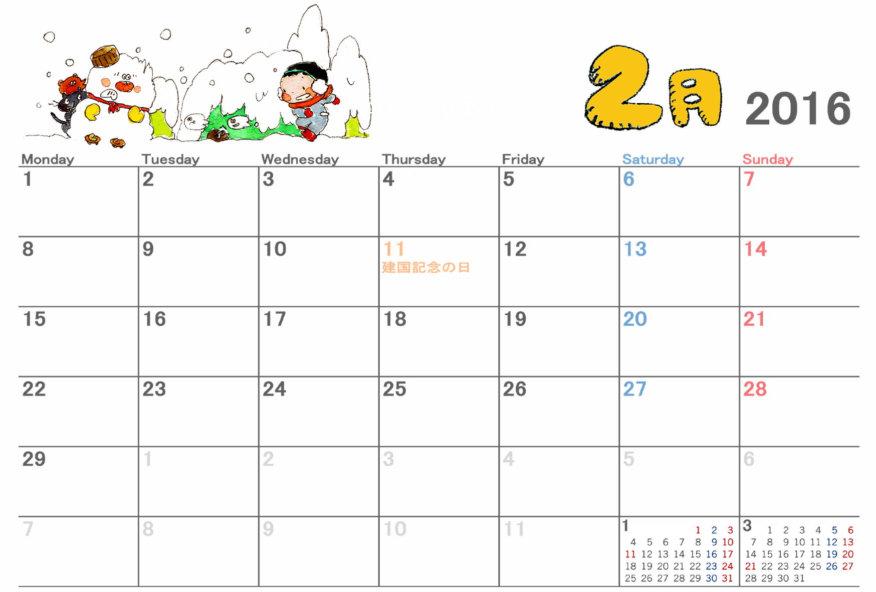 2016年2月カレンダー