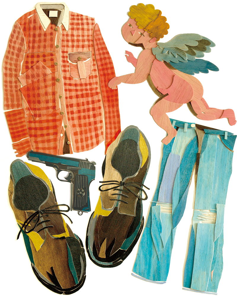 木片を切り貼りして制作しています。