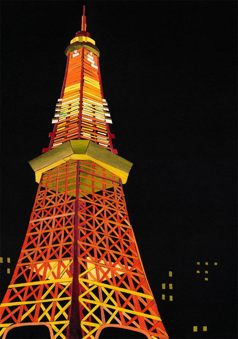 木片を切り貼りして制作しています。
