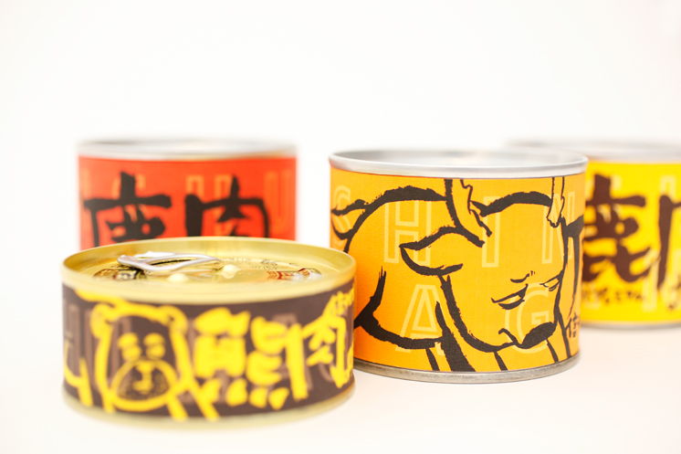 長野県、信州の名産品「鹿・熊 煮缶詰」。