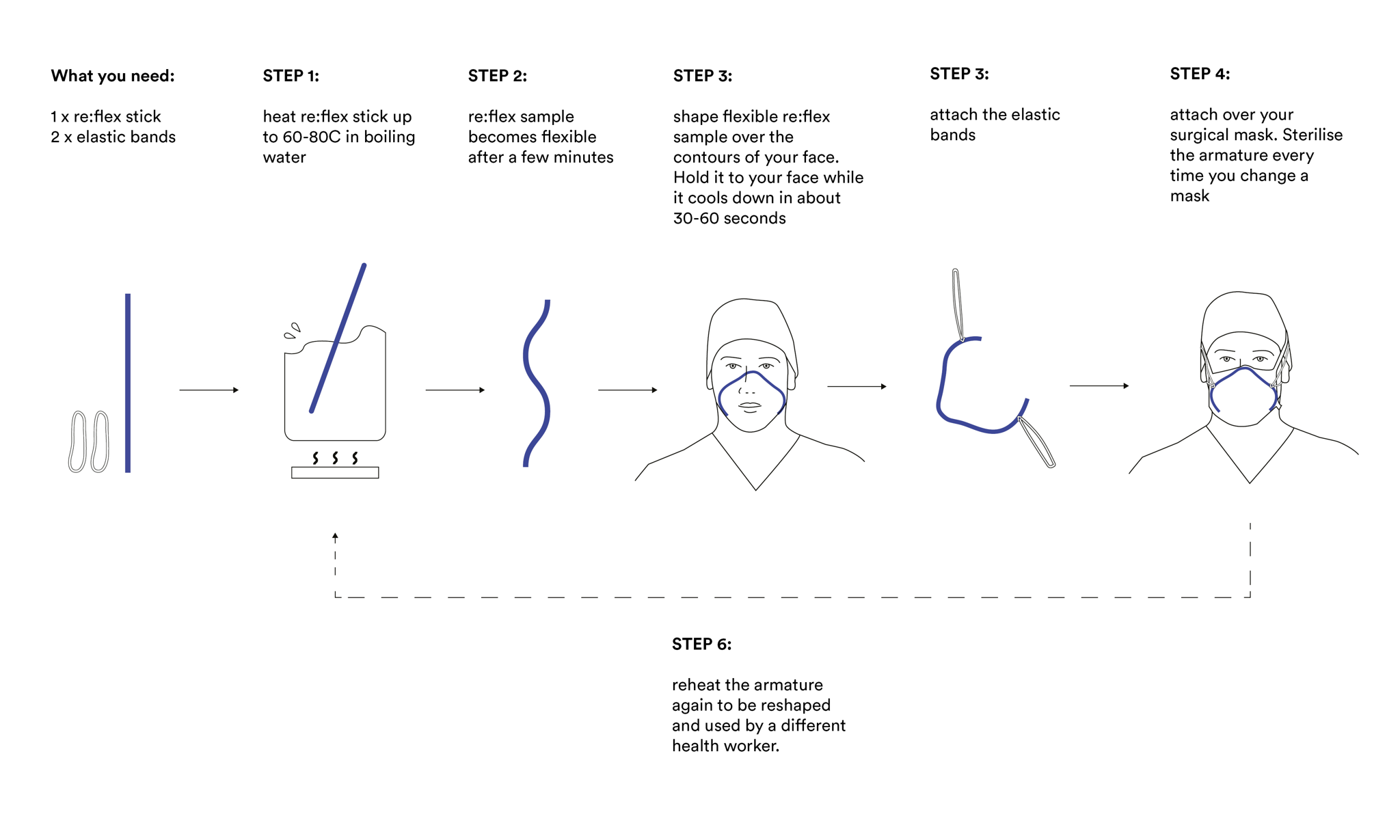 Improving the fit of surgical masks to the face using a customisable and reusable armature made out of Re:flex.