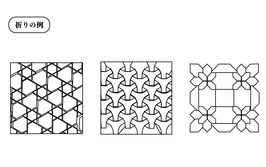 折り目をデザインすることで、マスクにデザイン性を加えることができ、服を選ぶように好きな模様のマスクを選ぶことができます。また、折り目の表と裏で見え方が変わるため、1つの模様で2通りの楽しみ方ができます。