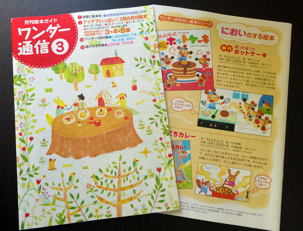 世界文化社様より発売の幼稚園、保育園向けの月刊絵本『ワンダーブック』の副読本、『ワンダー通信』3月号の表紙を担当させていただきました。(*^_^*)
