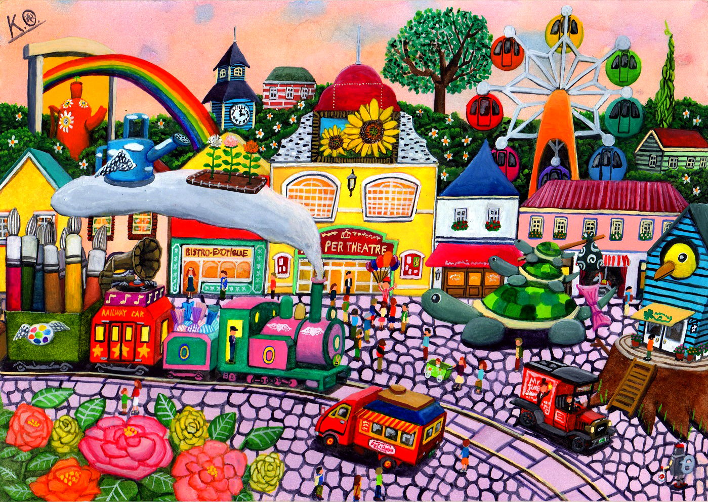 水彩色鉛筆・水彩絵の具でA4(210×297)サイズのイラストボードに描いたもの。