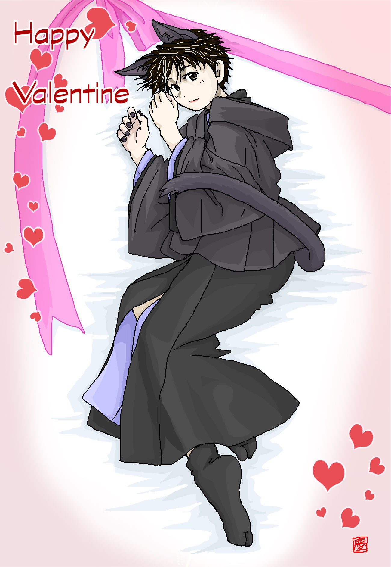バレンタイン用に描いた、『スミカスミレ』の化け猫 黎のコスプレのにゃんべ君です。
