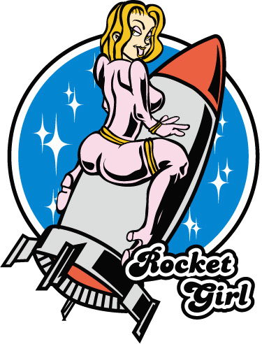 ロケットにまたがり夜空へぶっ飛ぼうとしている女の子です。