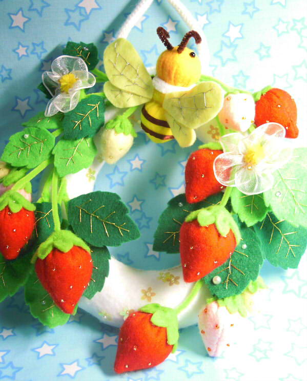 みつばちと苺のリース
