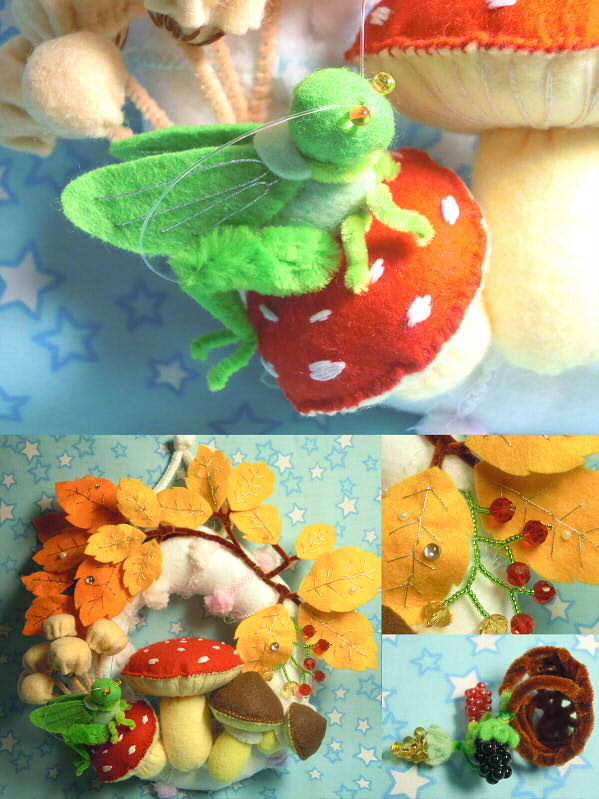 秋のきのこリース(部分拡大)