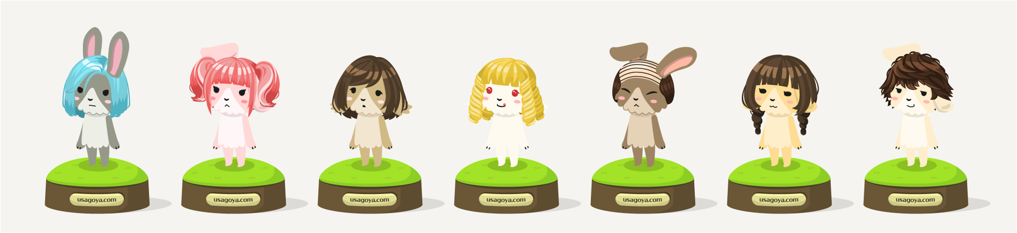 新うさゴヤ第2弾ガチャ「おとぎの国ガチャ1」のアバターショーケースです