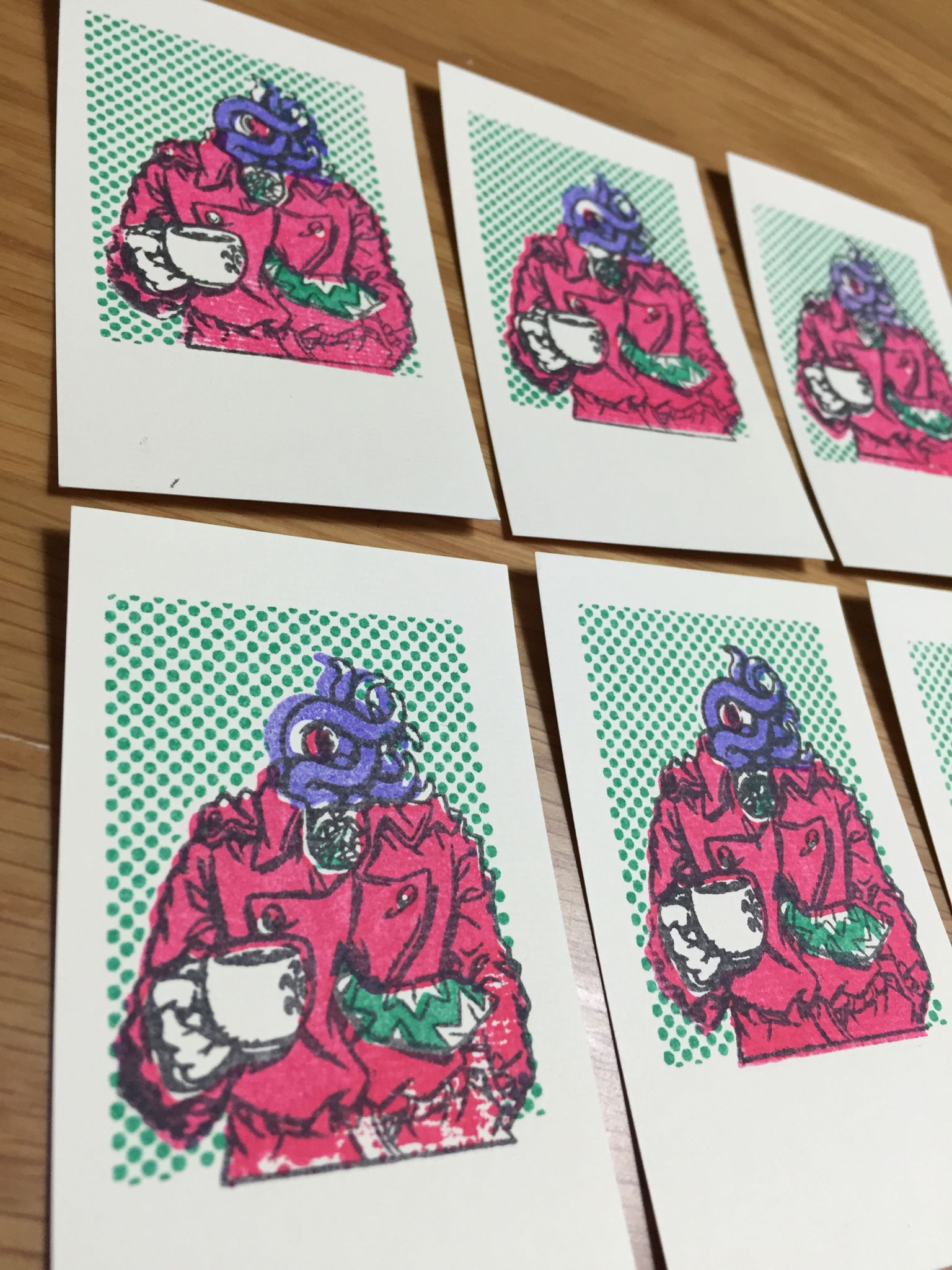 It's Hand-made one by one card,i use 6 ink color stamps for each one.