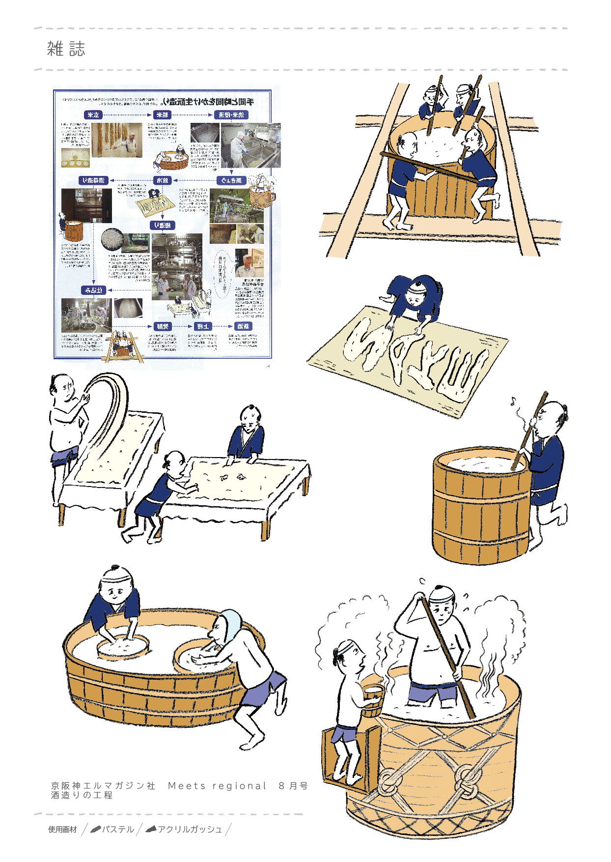 日本酒特集で酒造りの工程をイラストにしました。