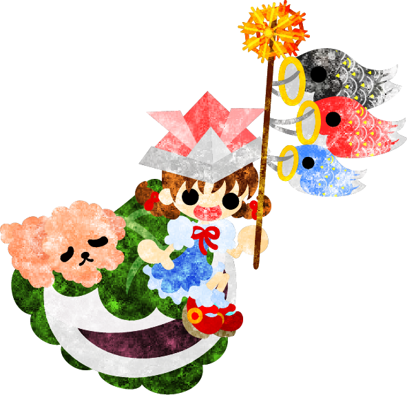 女の子と鯉のぼりと柏餅