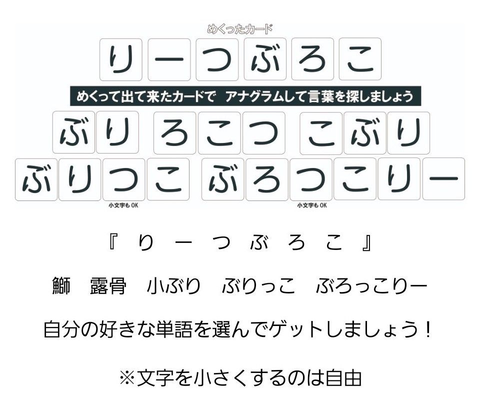 出てきたひらがなで言葉を作れればそのカードをゲット!