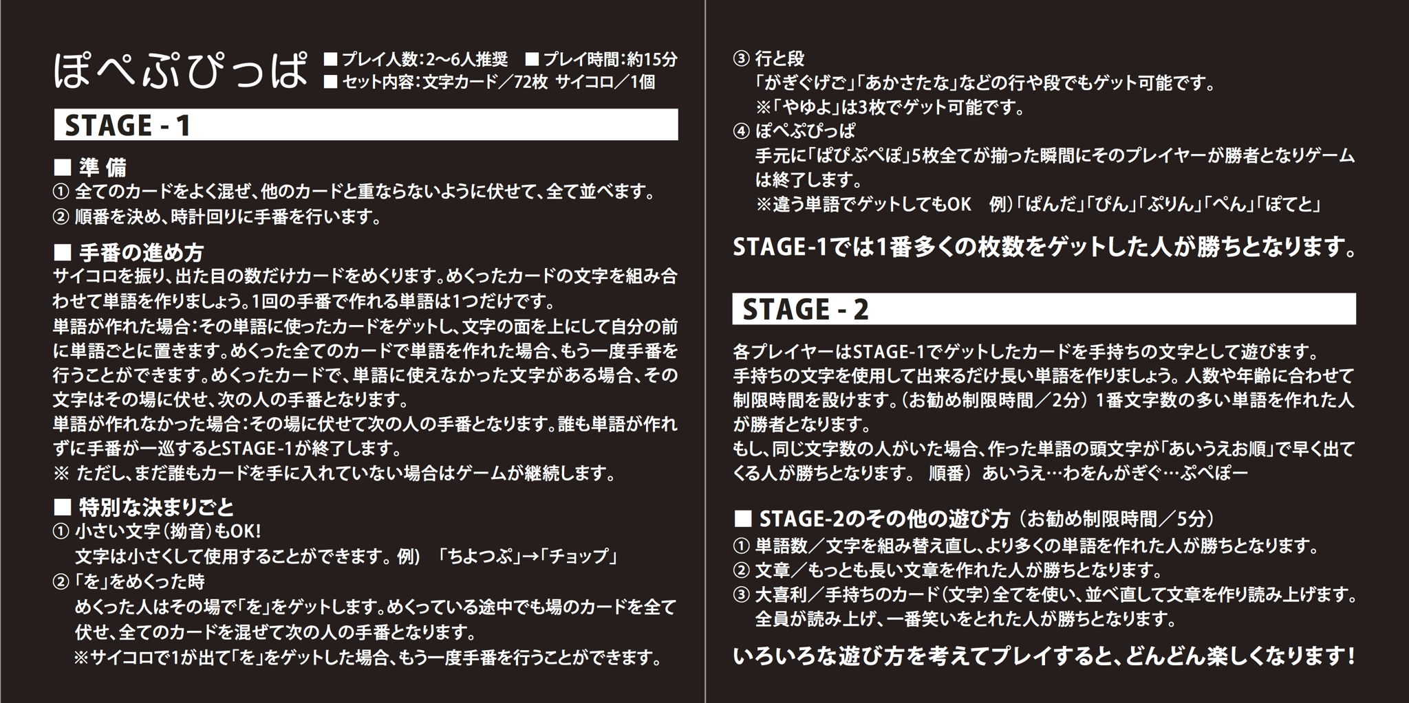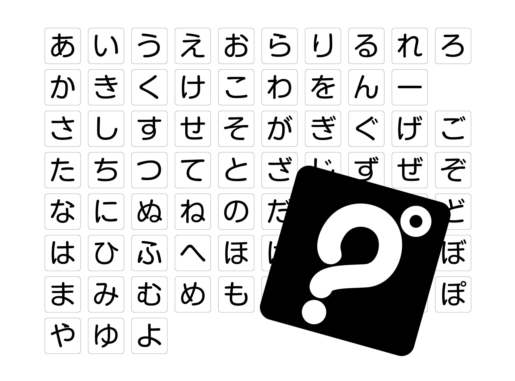「あ」〜「ぽ」「ー」までのひらがなが全72枚で遊ぶカードゲーム
