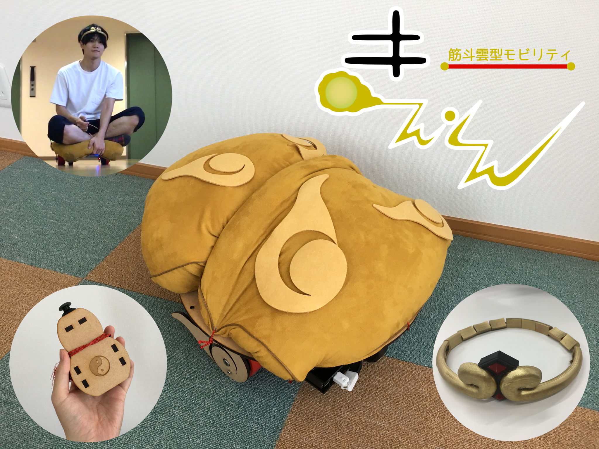 3m四方の空間で遊ぶ「おままごと」。空間内のオブジェクトは緑色に塗装されているものが混在している。ユーザーはスマートデバイスを通じて対象のオブジェクトを視認することで仮想の物と触れ合える。