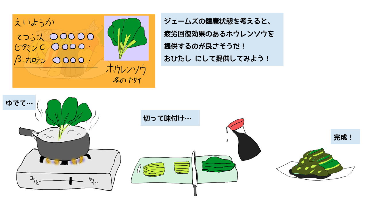 ゲームは実在する様々な食材と、本格的な調理システムで、料理と栄養を楽しみながら学べるぞ!