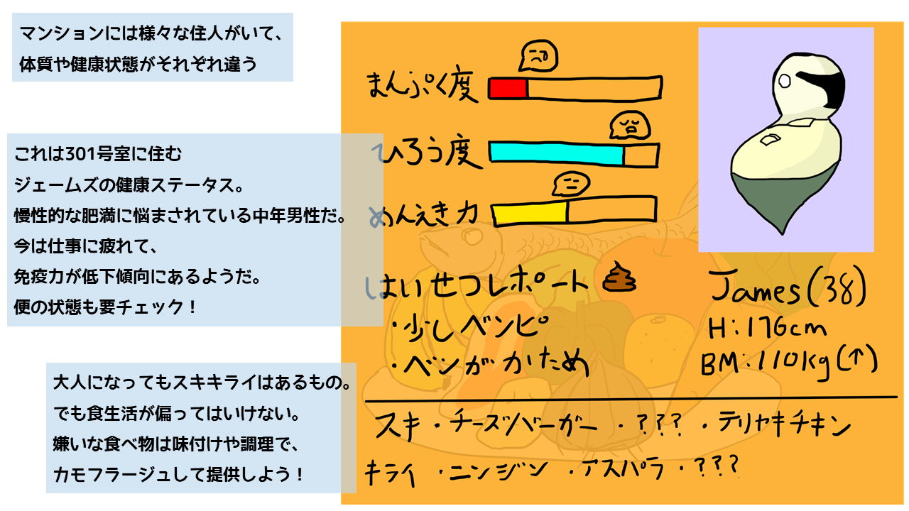 マンションの経営者となり、各部屋の住人の食生活を管理しよう!