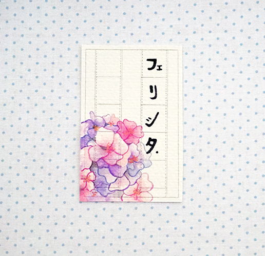 Name card on watercolor paper. Contact detail is on the back side of the card.