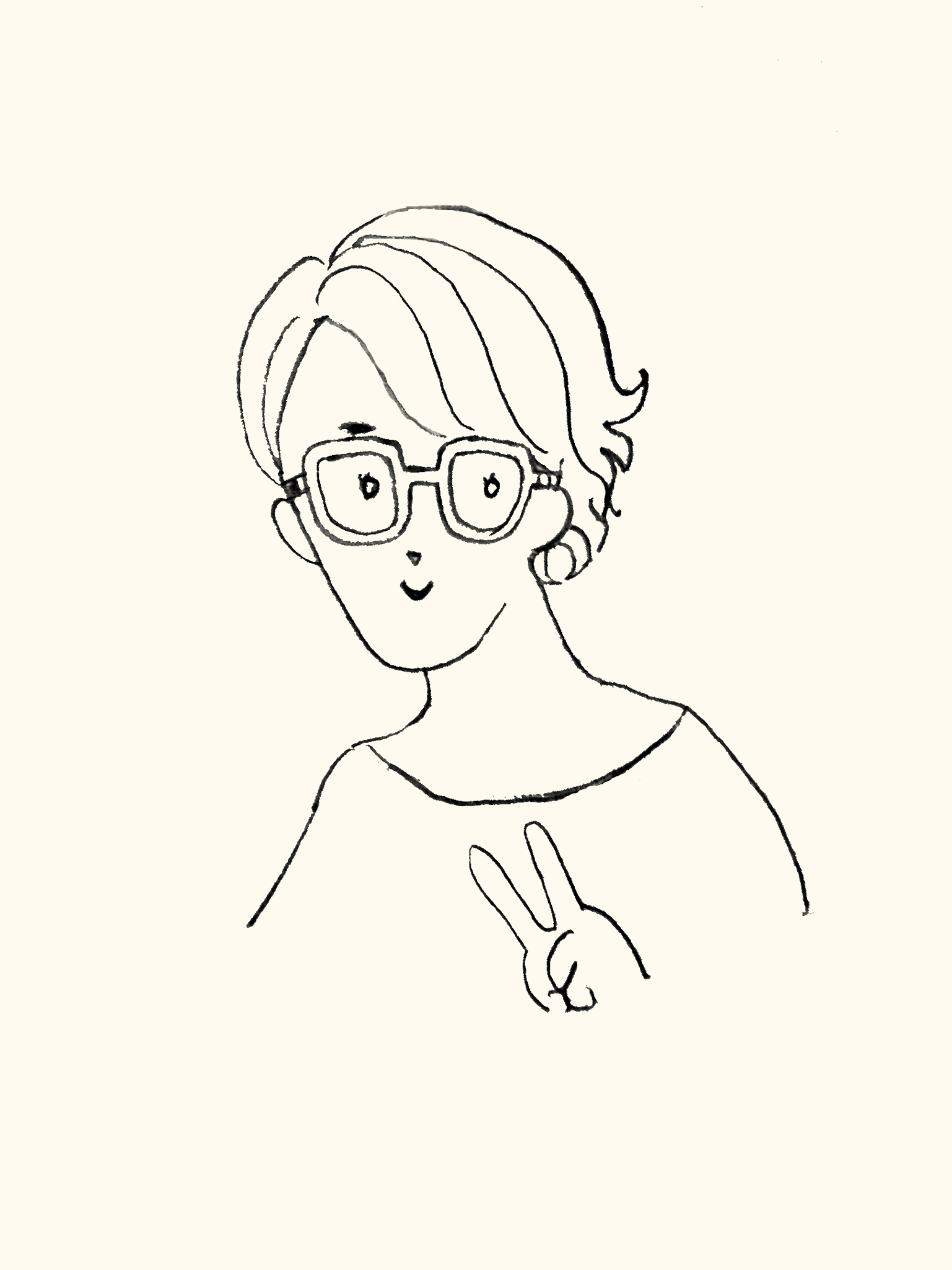 友人の「みなつちゃん」の似顔絵を描いたものです。大きな眼鏡と、猫背ぎみで口が小さいところが彼女の特徴です。