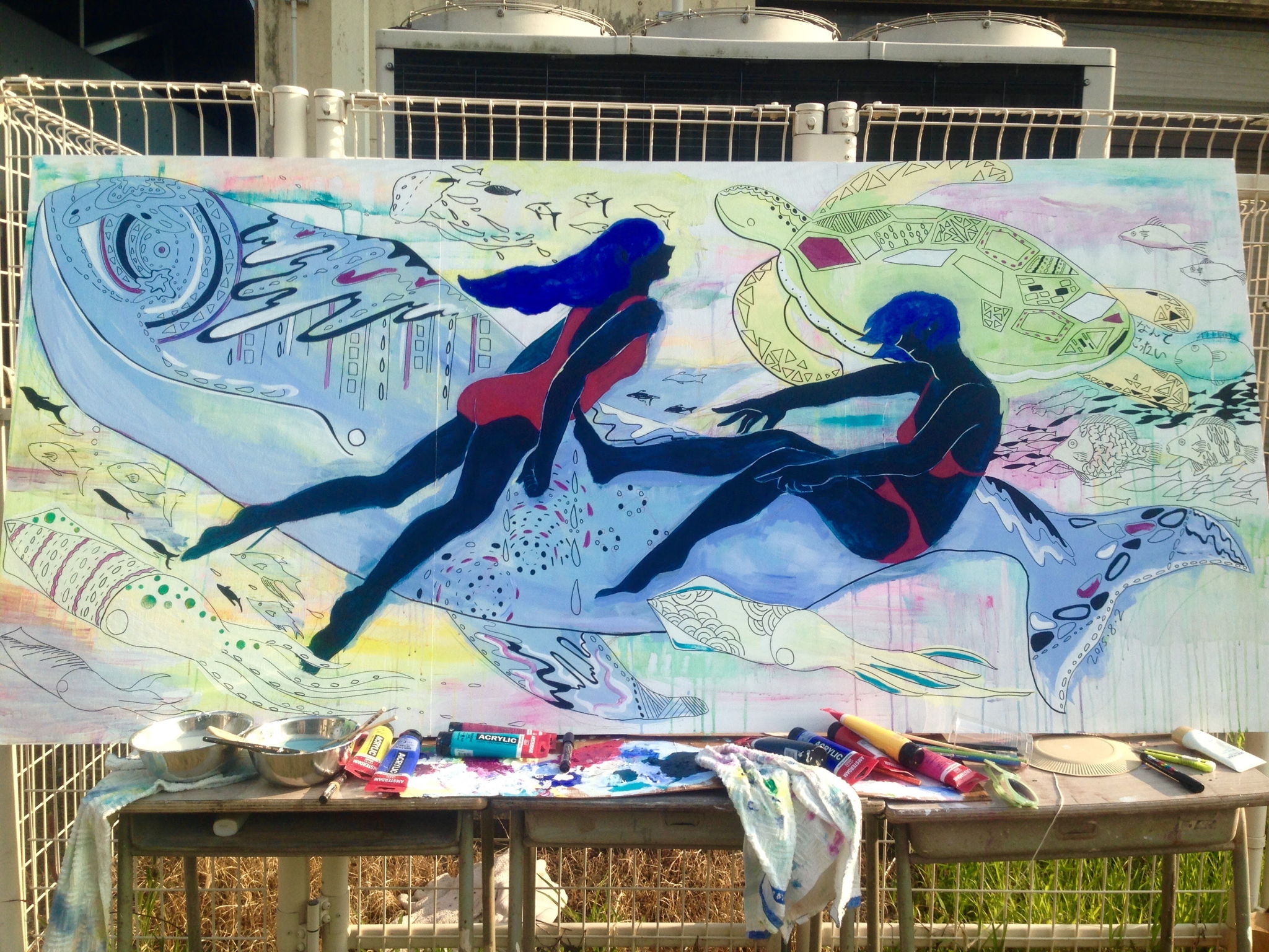 2015年の京都市立芸大オープンキャンパスで友人と2人で描いたものです。私は主に人物を担当しました。