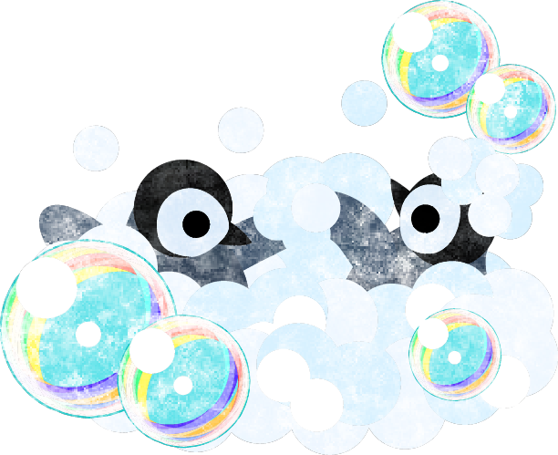 お風呂に入る可愛い赤ちゃんペンギン