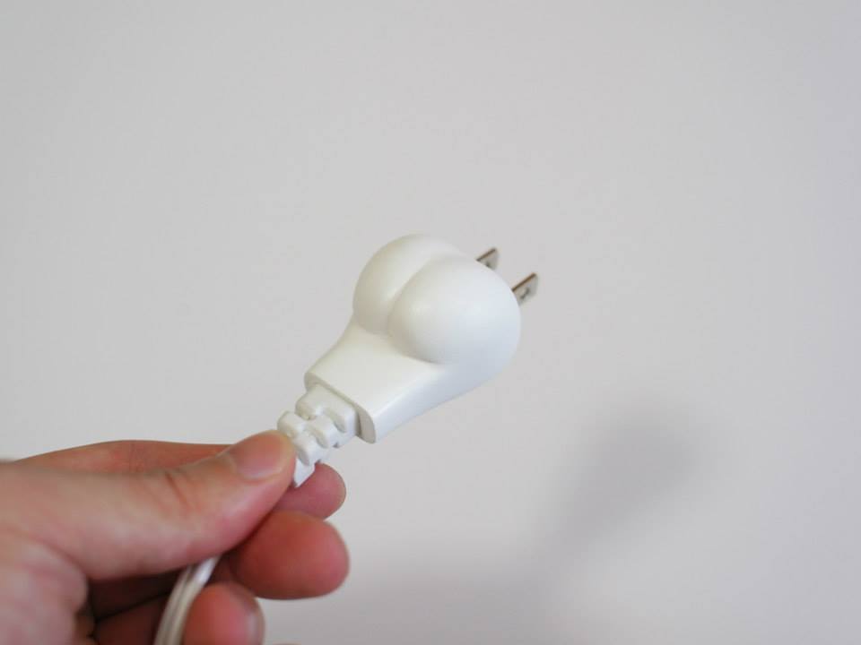 つい目がいっちゃうおしり型の電源用延長コードです。待機電力を減らすために、電源コードに自然と目が向くように誘導し、楽しく抜くことを促します。