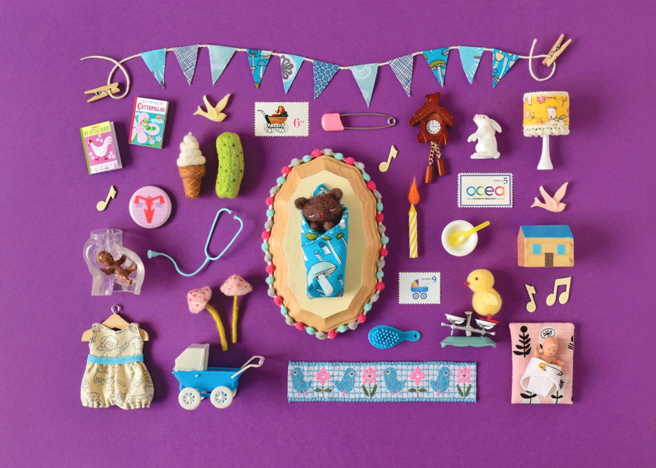 妊娠・出産・ベビーテーマのミニチュアコラージュ。