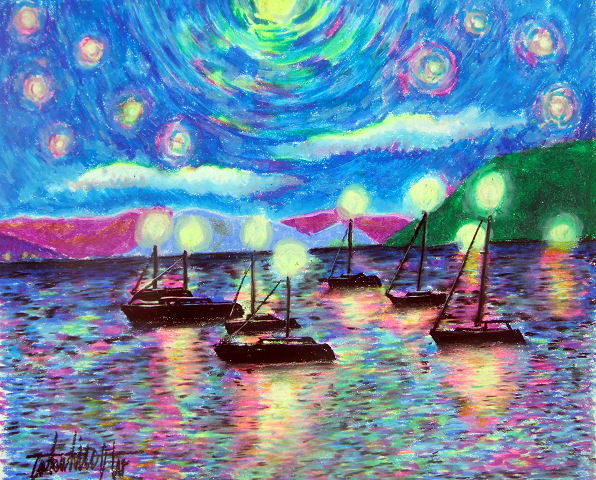 A harbor at night of small island jostvandyke which appears on CARIBE was drawn.