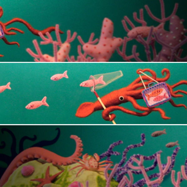 デイリーポータルZのヘッダ画像のお仕事をやらせて頂きました!夏休みの魚採集してるイカの深海ジオラマです。