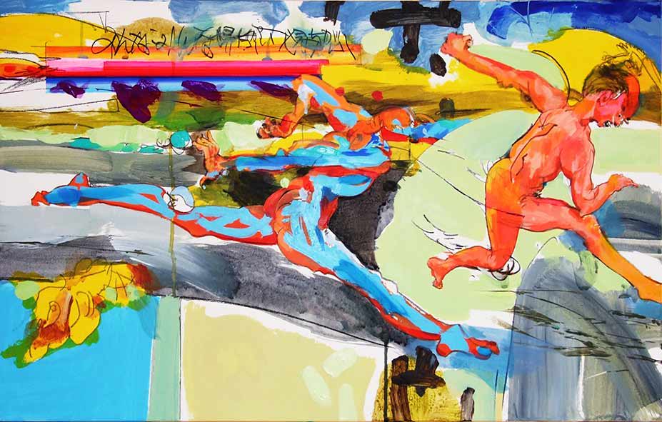 その二つをパネルに描き込んだ時には単に2人の人物が走っていることしか思ってなかった。