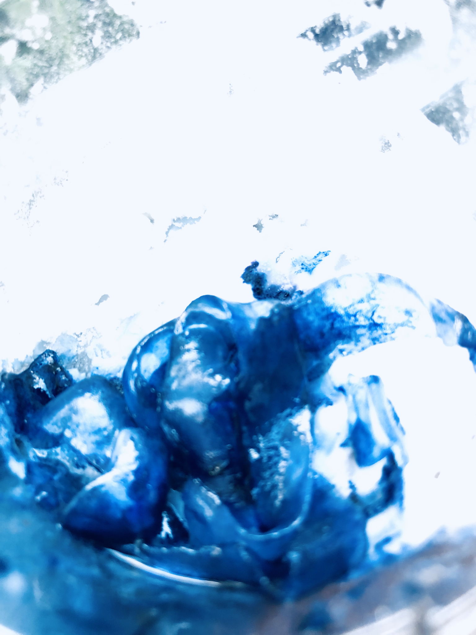 通常は酸を加えると、一瞬で混ざり、水は単色になるが、粘性のある水を使うことで完全に混ざり合うことが難しい環境を作った。