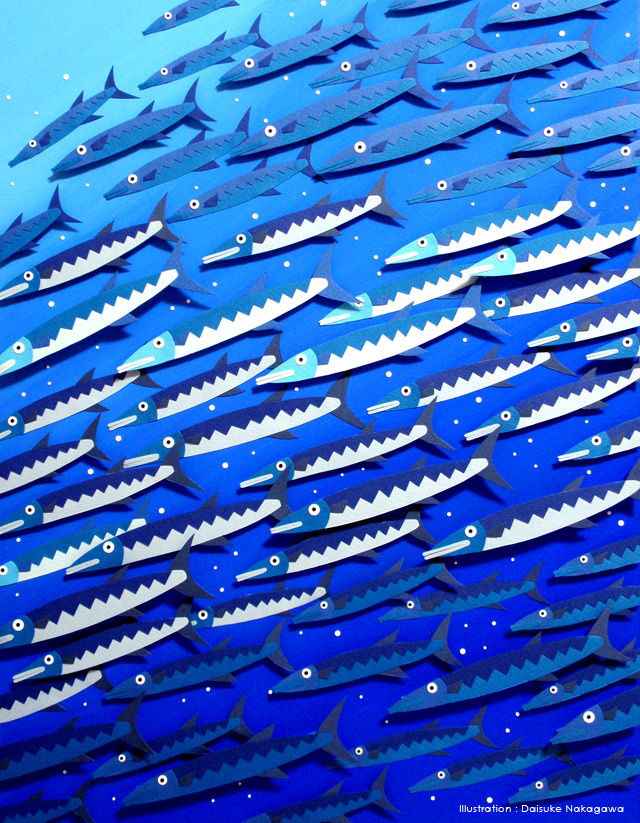 大海原に群を成し、泳ぐブラックフィンバラクーダ。